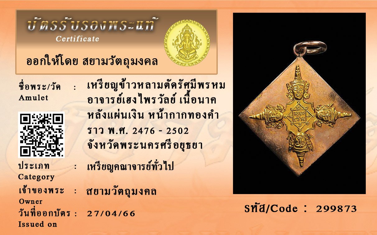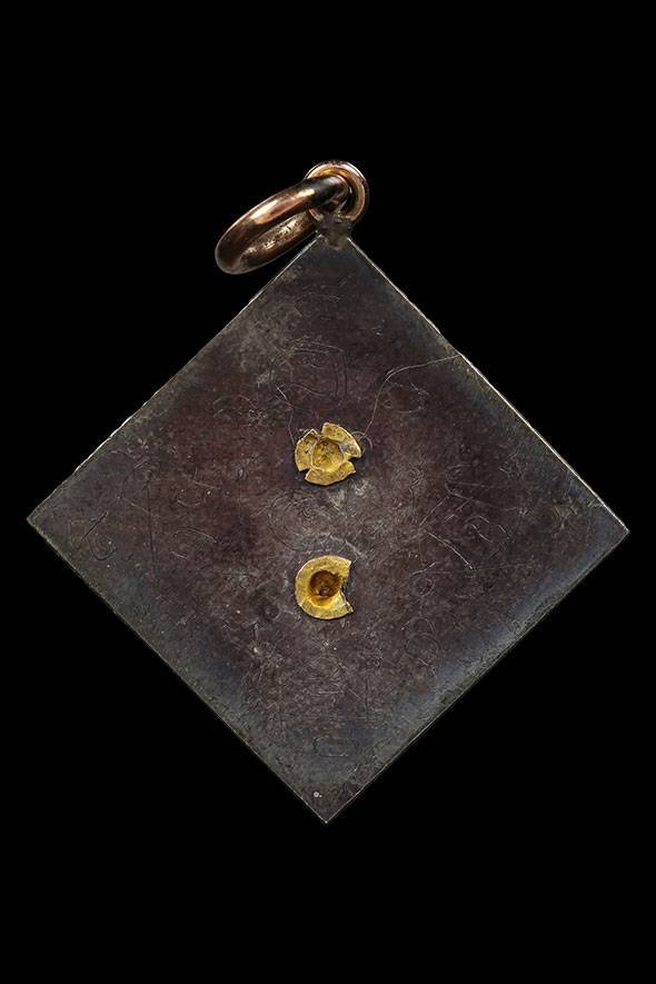 รหัสสินค้า : 299873 เหรียญข้าวหลามตัดรัศมีพรหม อาจารย์เฮงไพรวัลย์ เนื้อนาค หลังแผ่นเงิน หน้ากากทองคำ ราว พ.ศ. 2476 - 2502 จังหวัดพระนครศรีอยุธยา
