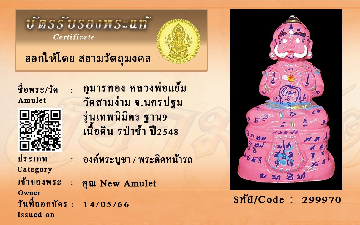 รหัสสินค้า : 299970 กุมารทอง หลวงพ่อแย้ม วัดสามง่าม จ.นครปฐม รุ่นเทพนิมิตร ฐาน9 เนื้อดิน 7ป่าช้า ปี2548