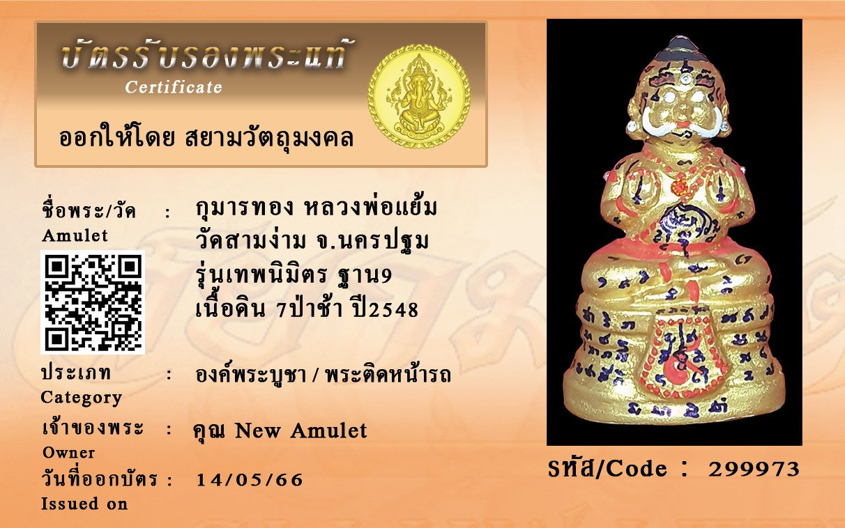 รหัสสินค้า : 299973 กุมารทอง หลวงพ่อแย้ม วัดสามง่าม จ.นครปฐม รุ่นเทพนิมิตร ฐาน9 เนื้อดิน 7ป่าช้า ปี2548