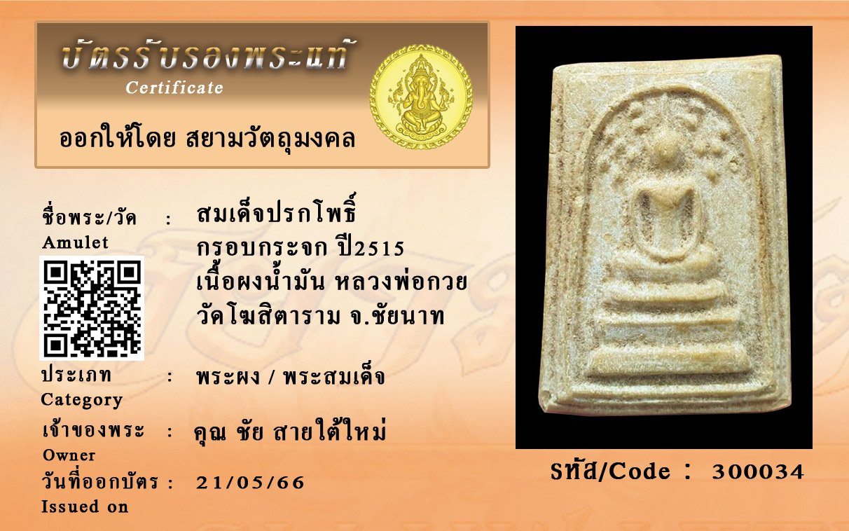 รหัสสินค้า : 300034 สมเด็จปรกโพธิ์ กรอบกระจก ปี2515 เนื้อผงน้ำมัน หลวงพ่อกวย วัดโฆสิตาราม จ.ชัยนาท