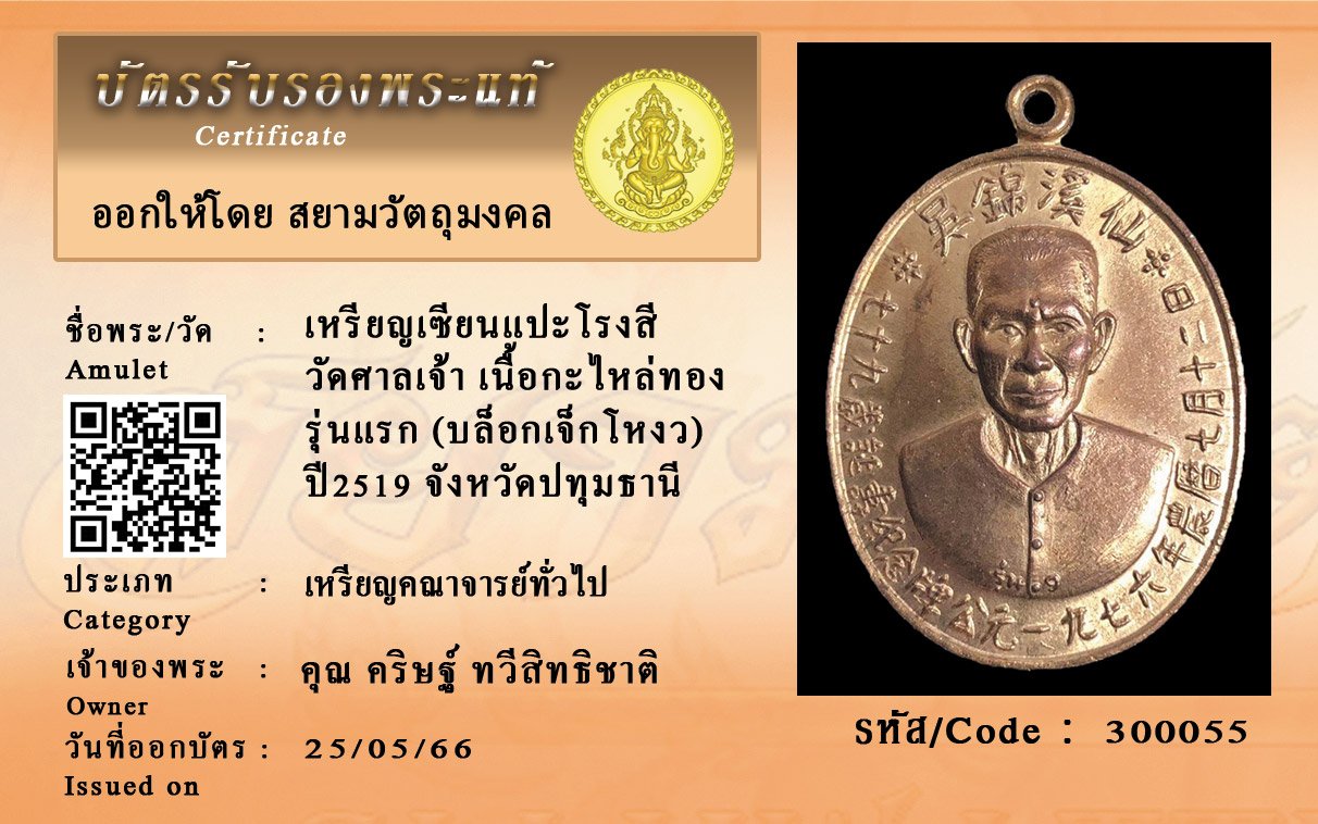 รหัสสินค้า : 300055 เหรียญเชียนแปะโรงสี วัดศาลเจ้า เนื้อกะไหล่ทอง รุ่นแรก (บล็อกเจ็กโหงว) ปี2519 จังหวัดปทุมธานี