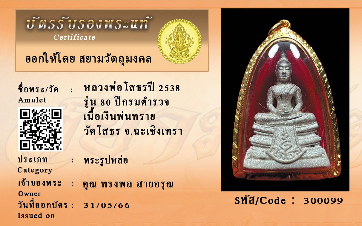 รหัสสินค้า : 300099 หลวงพ่อโสธรปี 2538 รุ่น 80 ปีกรมตำรวจ เนื้อเงินพ่นทราย วัดโสธร จ.ฉะเชิงเทรา