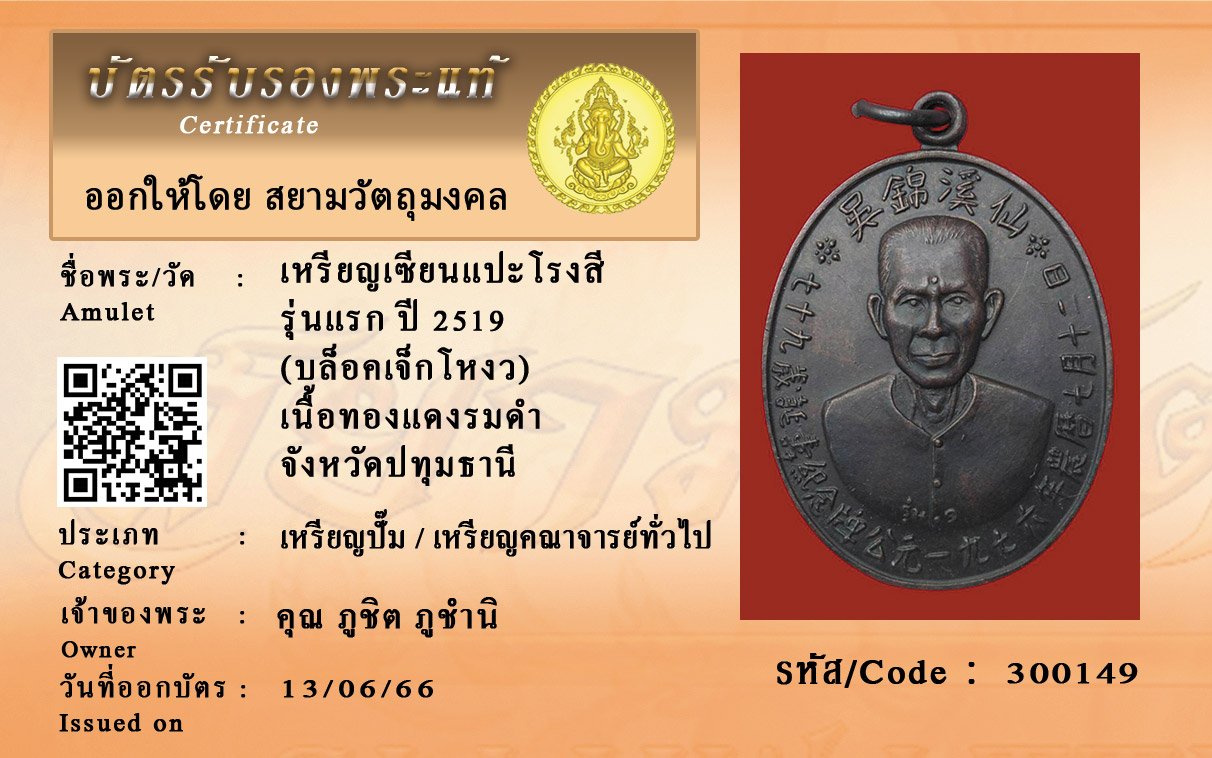 รหัสสินค้า : 300149 เหรียญเซียนแปะโรงสี รุ่นแรก ปี 2519 (บล็อคเจ็กโหงว) เนื้อทองแดงรมดำ จังหวัดปทุมธานี