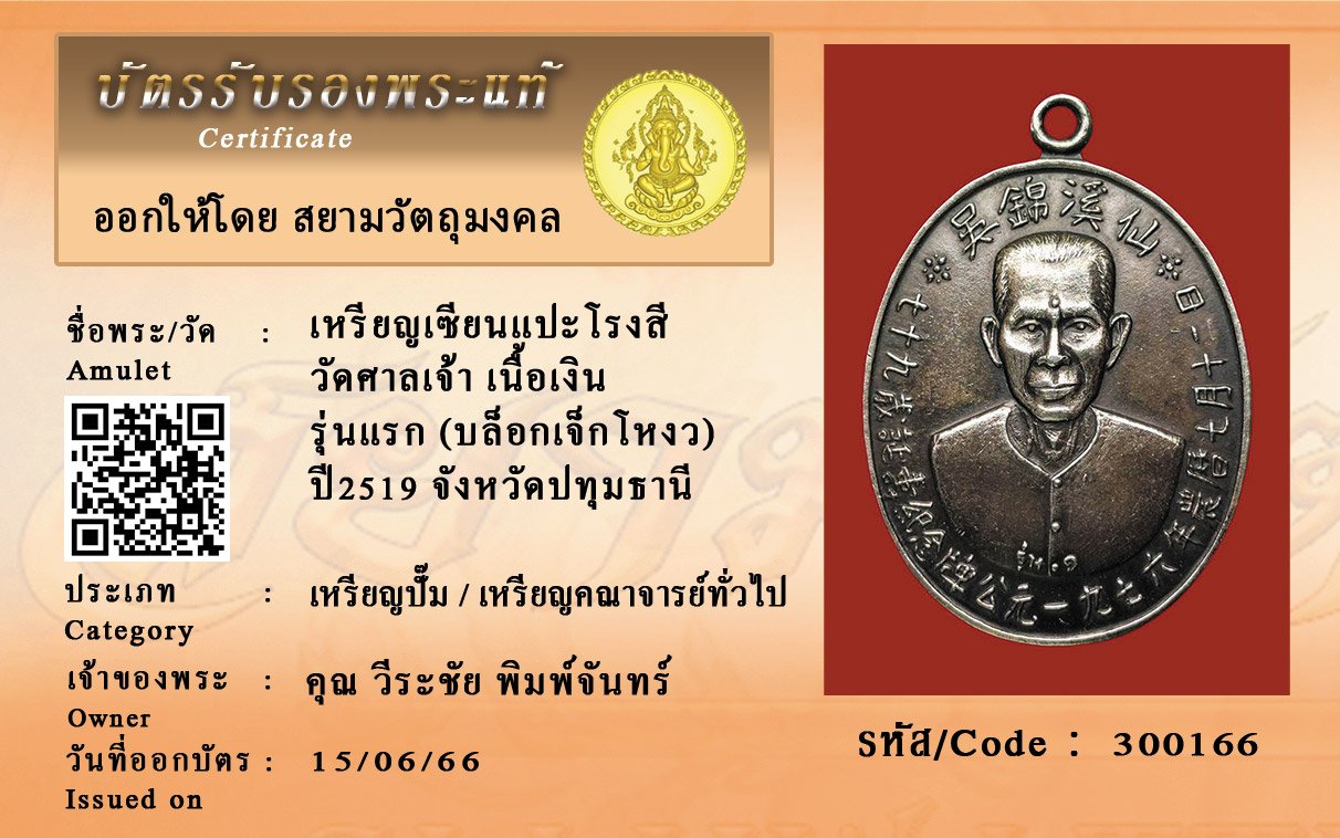 รหัสสินค้า : 300166 เหรียญเซียนแปะโรงสี วัดศาลเจ้า เนื้อเงิน รุ่นแรก (บล็อกเจ็กโหงว) ปี2519 จังหวัดปทุมธานี