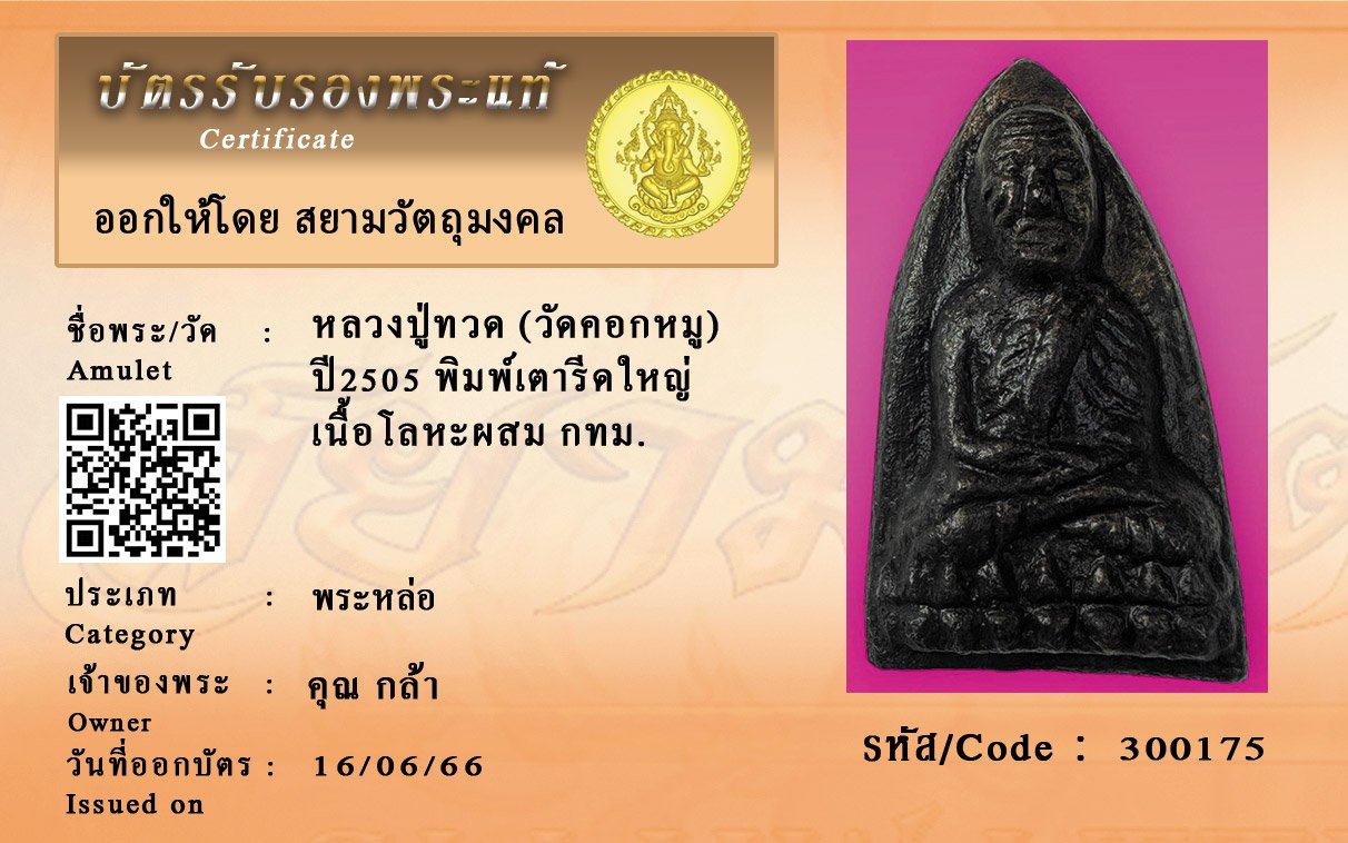 รหัสสินค้า : 300175 หลวงปู่ทวด (วัดคอกหมู) ปี2505 พิมพ์เตารีดใหญ่ เนื้อโลหะผสม กทม.