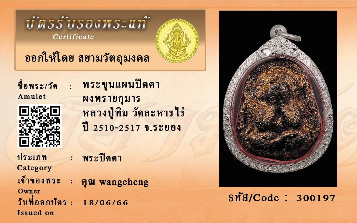 รหัสสินค้า : 300197 พระขุนแผนปิดตา ผงพรายกุมาร หลวงปู่ทิม วัดละหารไร่ ปี 2510-2517 จ.ระยอง
