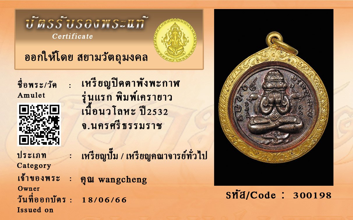 รหัสสินค้า : 300198 เหรียญปิดตาพังพะกาฬ รุ่นแรก พิมพ์เครายาว เนื้อนวโลหะ ปี2532 จ.นครศรีธรรมราช