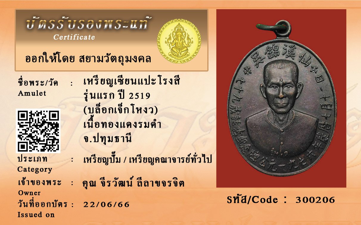 รหัสสินค้า : 300206 เหรียญเซียนแปะโรงสี รุ่นแรก ปี 2519 (บล็อกเจ็กโหงว) เนื้อทองแดงรมดำ จ.ปทุมธานี