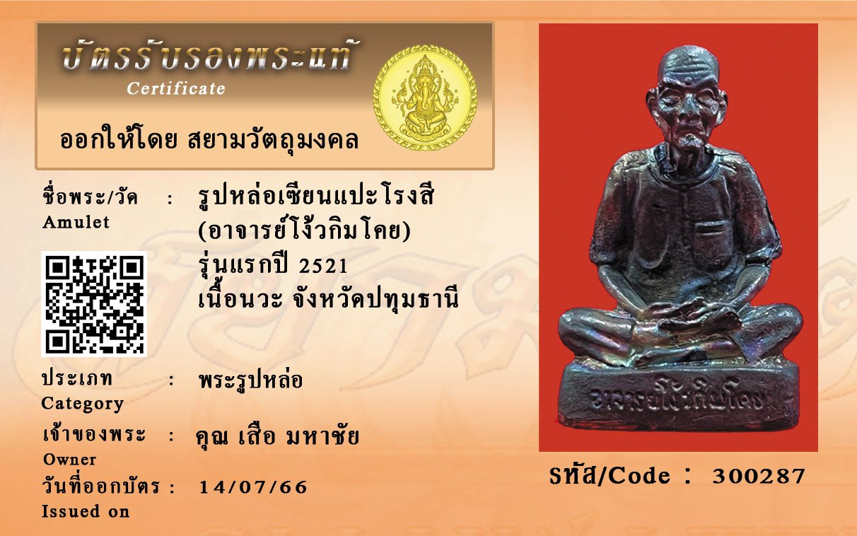รหัสสินค้า : 300287 รูปหล่อเซียนแปะโรงสี (อาจารย์โง้วกิมโคย) รุ่นแรกปี 2521 เนื้อนวะ จังหวัดปทุมธานี