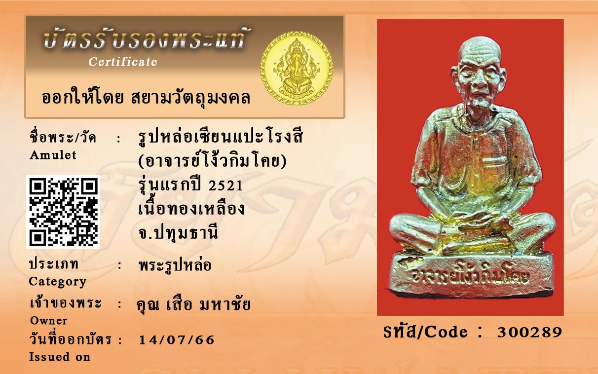รหัสสินค้า : 300289 รูปหล่อเซียนแปะโรงสี (อาจารย์โง้วกิมโคย) รุ่นแรกปี 2521 เนื้อทองเหลือง จ.ปทุมธานี