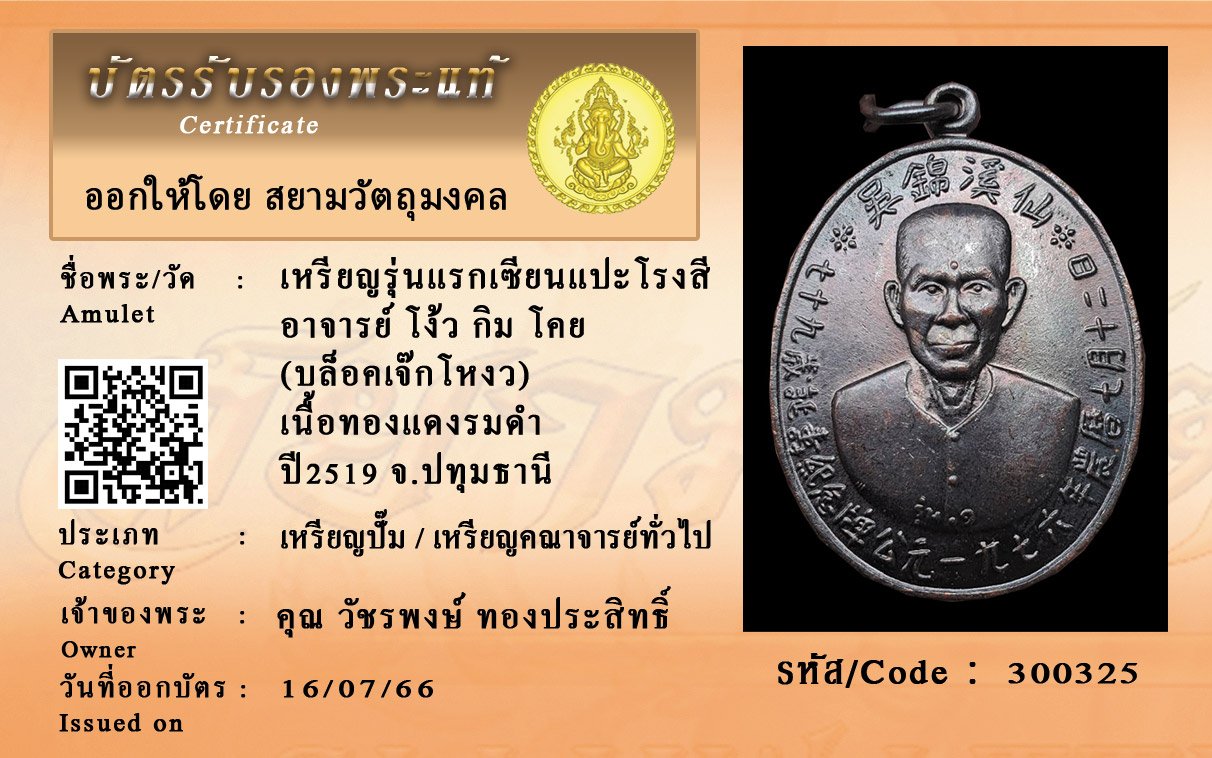 รหัสสินค้า : 300325 เหรียญรุ่นแรกเซียนแปะโรงสี อาจารย์ โง้ว กิม โคย (บล็อคเจ๊กโหงว) เนื้อทองแดงรมดำ ปี2519 จ.ปทุมธานี