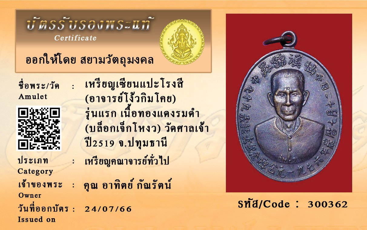 รหัสสินค้า : 300362 เหรียญเซียนแปะโรงสี (อาจารย์โง้วกิมโคย) รุ่นแรก เนื้อทองแดงรมดำ (บล็อกเจ็กโหงว) วัดศาลเจ้า ปี2519 จ.ปทุมธานี