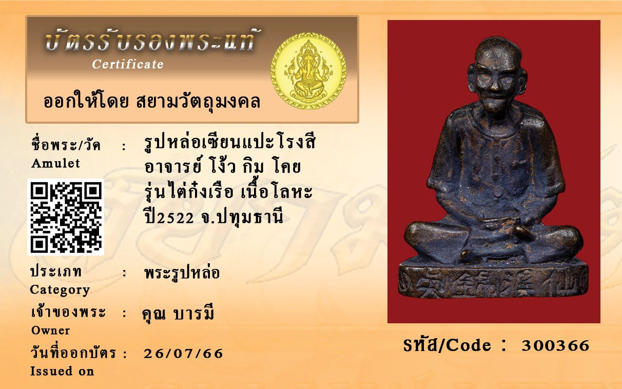 รหัสสินค้า : 300366 รูปหล่อบูชา เซียนแปะโรงสี อาจารย์ โง้ว กิม โคย รุ่นไต่ก๋งเรือ เนื้อโลหะ ปี2522 จ.ปทุมธานี