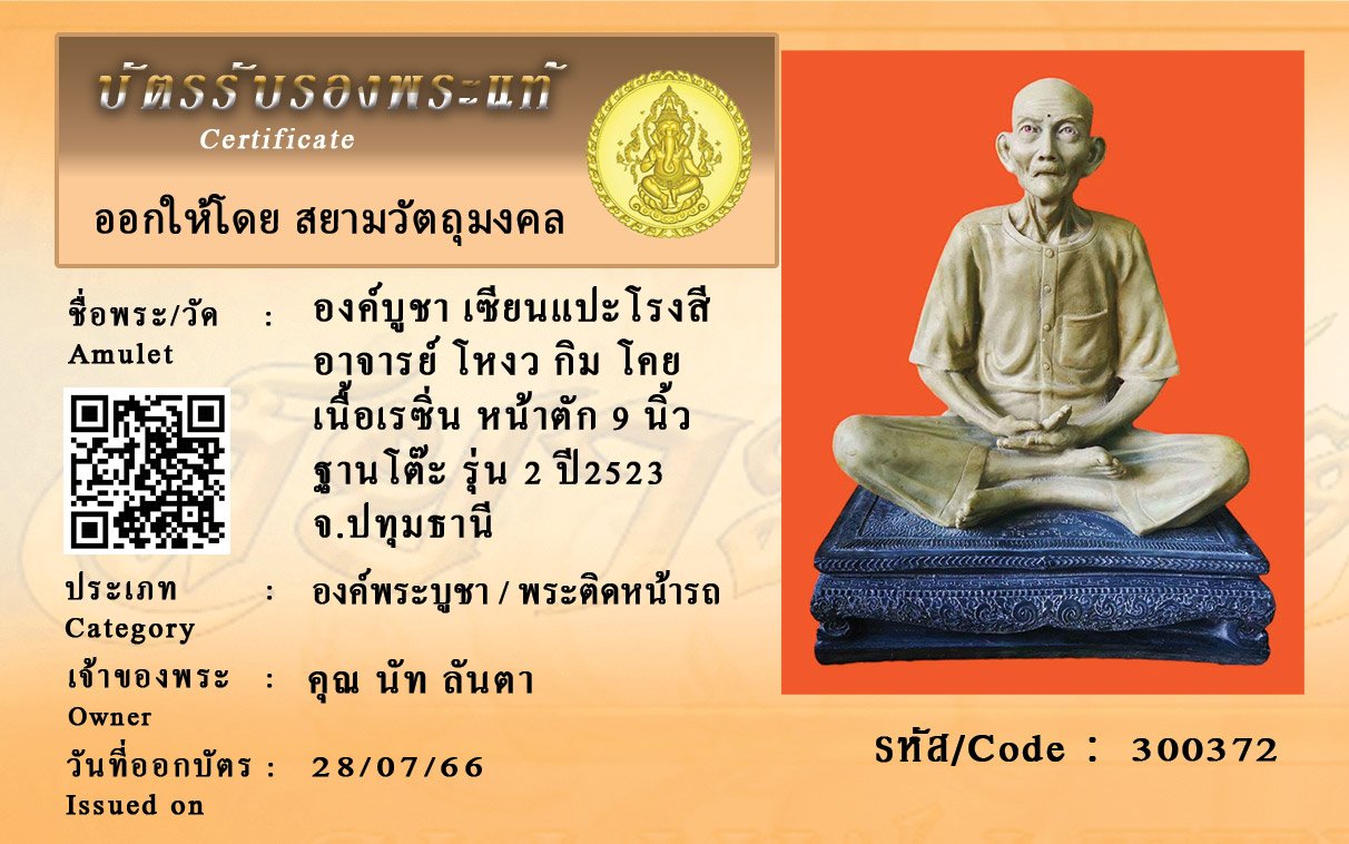 รหัสสินค้า : 300372 องค์บูชา เซียนแปะโรงสี อาจารย์ โหงว กิม โคย เนื้อเรซิ่น หน้าตัก 9 นิ้ว ฐานโต๊ะ รุ่น 2 ปี2523 จ.ปทุมธานี