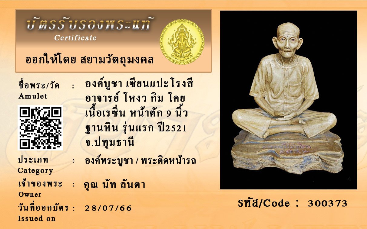 รหัสสินค้า : 300373 องค์บูชา เซียนแปะโรงสี อาจารย์ โหงว กิม โคย เนื้อเรซิ่น หน้าตัก 9 นิ้ว ฐานหิน รุ่นแรก ปี2521 จ.ปทุมธานี