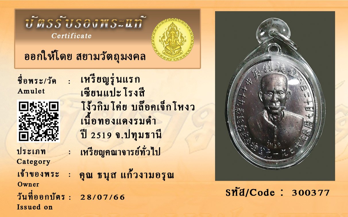 รหัสสินค้า : 300377 เหรียญรุ่นแรก เซียนแปะโรงสี โง้วกิมโค่ย บล๊อคเจ็กโหงว เนื้อทองแดงรมดำ จ.ปทุมธานี