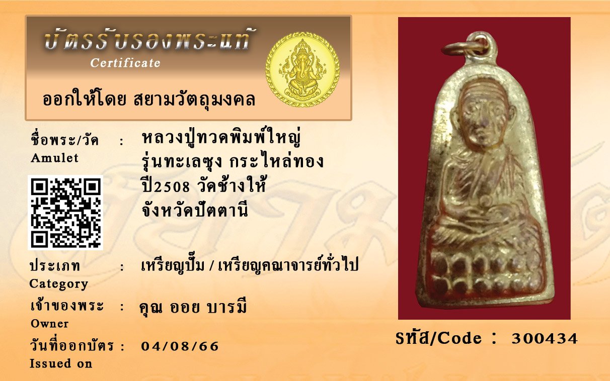 รหัสสินค้า : 300434 หลวงปู่ทวดพิมพ์ใหญ่ รุ่นทะเลซุง กระไหล่ทอง ปี2508 วัดช้างให้ จังหวัดปัตตานี