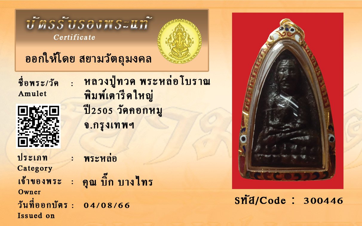 รหัสสินค้า : 300446 หลวงปู่ทวด พระหล่อโบราณ พิมพ์เตารีดใหญ่ ปี2505 วัดคอกหมู จ.กรุงเทพฯ