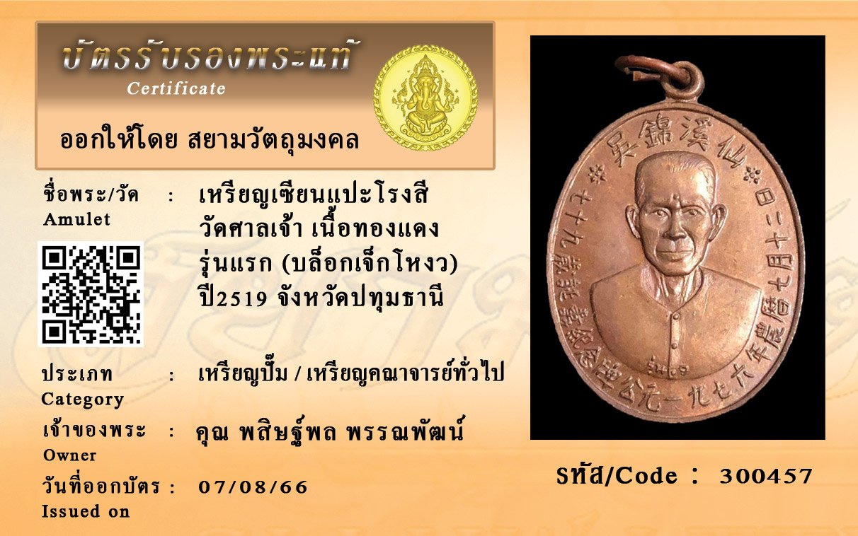 รหัสสินค้า : 300457 เหรียญเซียนแปะโรงสี วัดศาลเจ้า เนื้อทองแดง รุ่นแรก (บล็อกเจ็กโหงว) ปี2519 จังหวัดปทุมธานี
