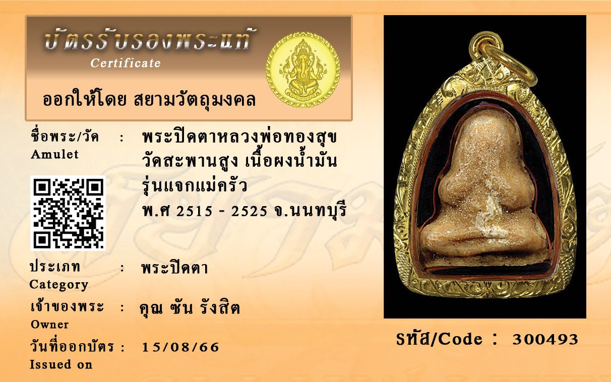 รหัสสินค้า : 300493 พระปิดตาหลวงพ่อทองสุข วัดสะพานสูง เนื้อผงน้ำมัน รุ่นแจกแม่ครัว พ.ศ 2515 - 2525 จ.นนทบุรี