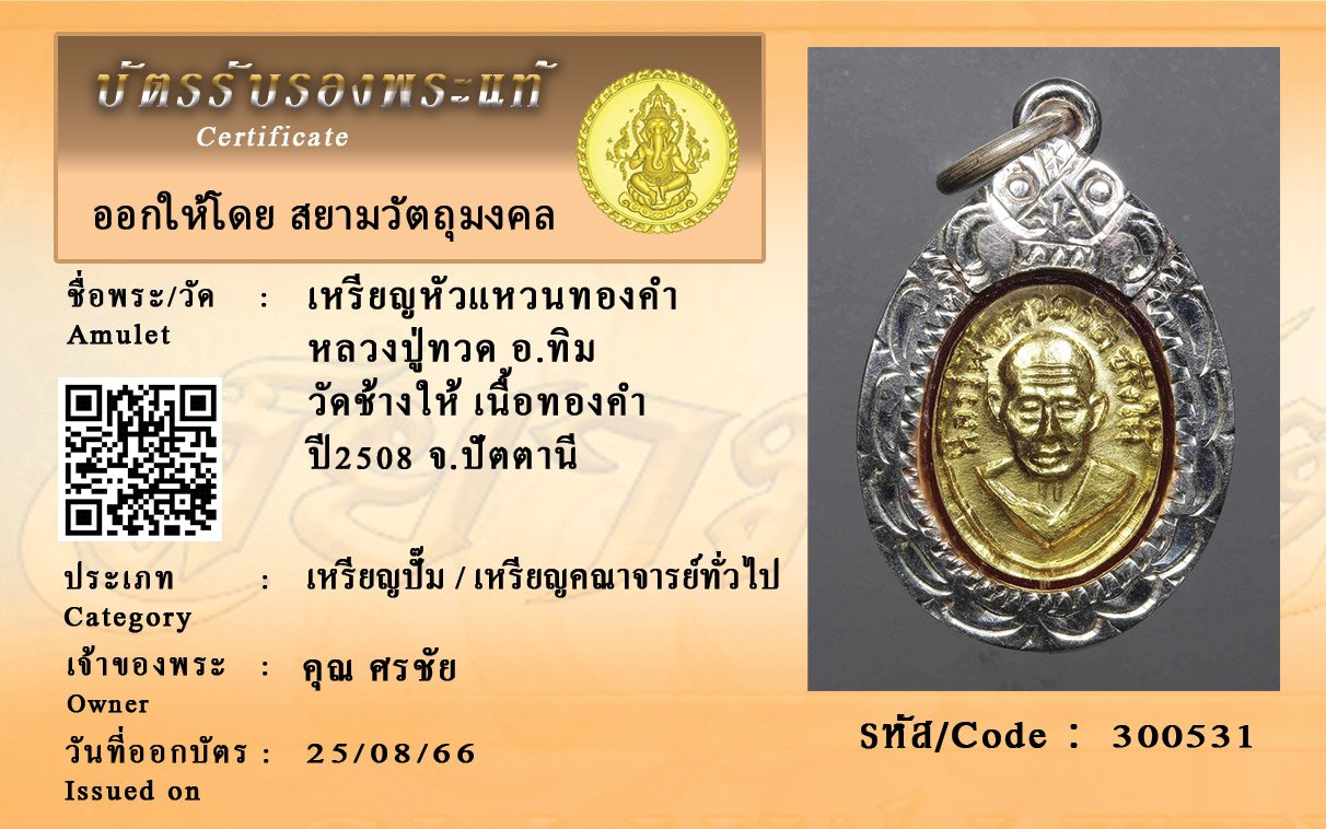 รหัสสินค้า : 300531 เหรียญหัวแหวนทองคำ หลวงปู่ทวด อ.ทิม วัดช้างให้ เนื้อทองคำ ปี2508 จ.ปัตตานี