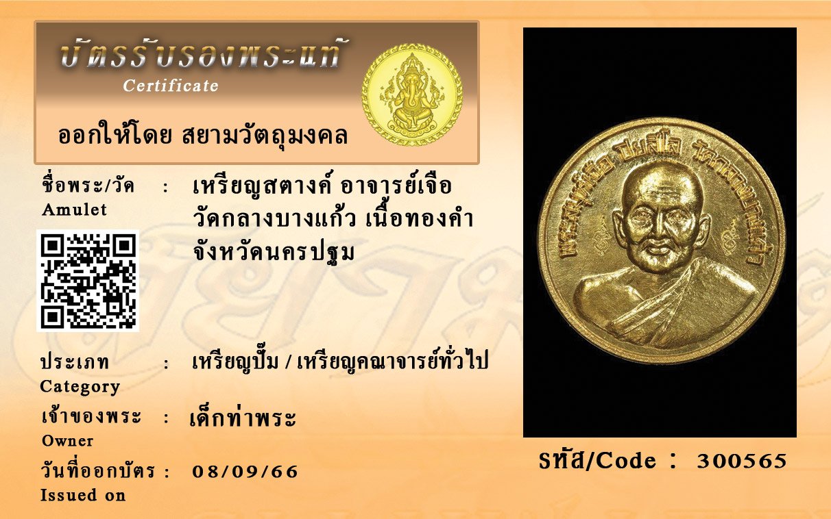 รหัสสินค้า : 300565 เหรียญสตางค์ อาจารย์เจือ วัดกลางบางแก้ว เนื้อทองคำ จังหวัดนครปฐม