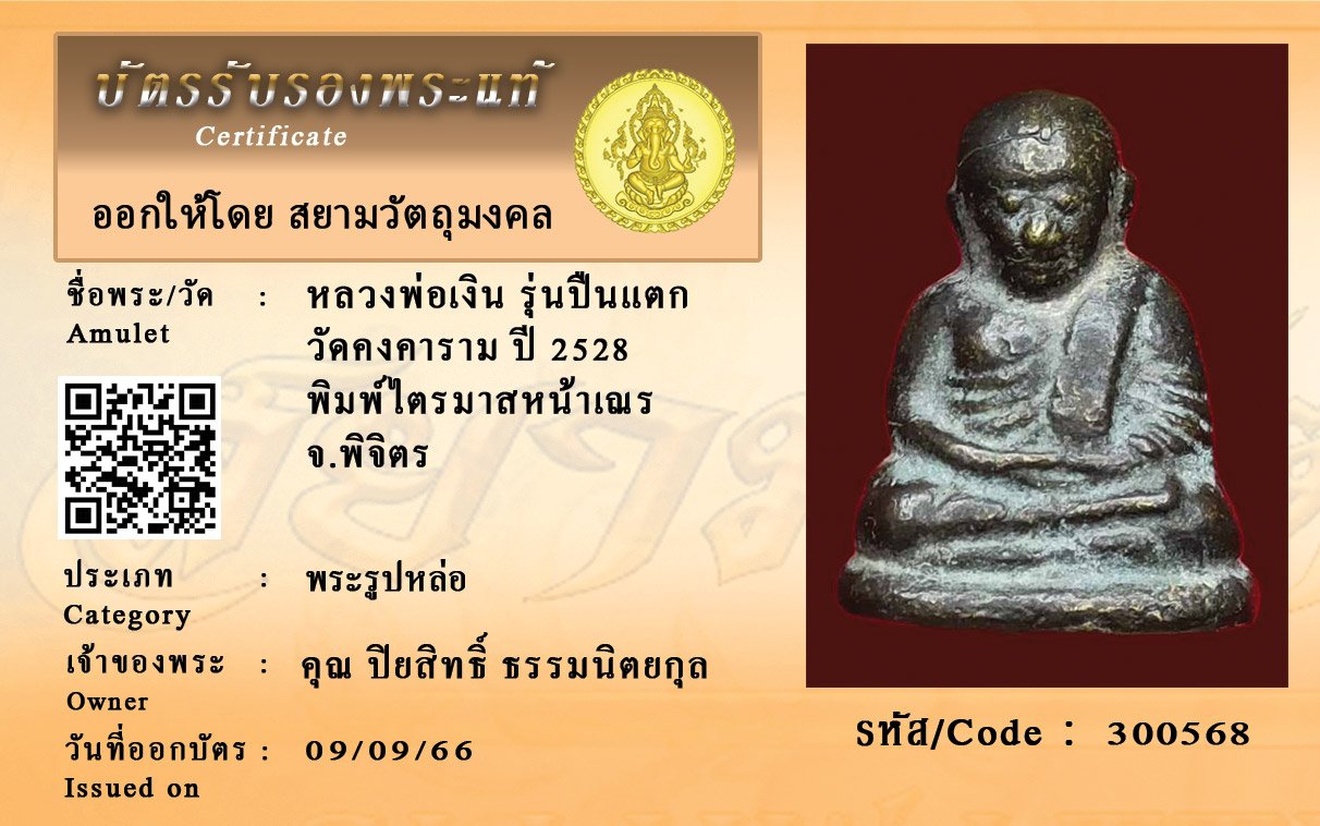 รหัสสินค้า : 300568 หลวงพ่อเงิน รุ่นปืนแตก วัดคงคาราม ปี 2528 พิมพ์ไตรมาสหน้าเณร จ.พิจิตร