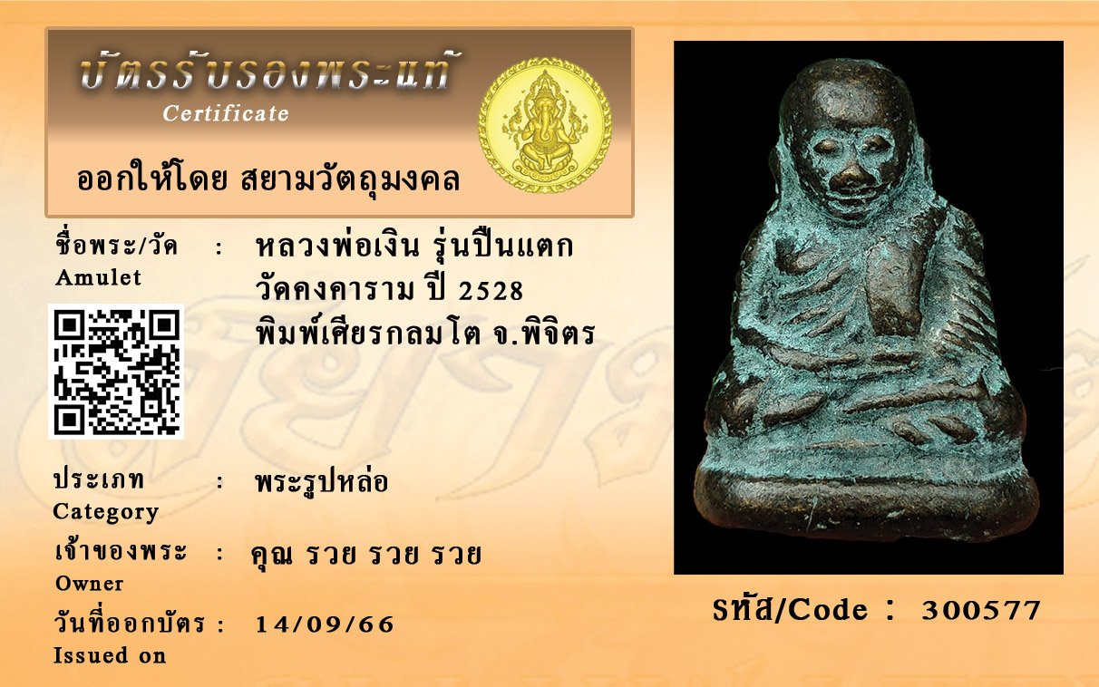รหัสสินค้า : 300577 หลวงพ่อเงิน รุ่นปืนแตก วัดคงคาราม ปี 2528 พิมพ์เศียรกลมโต จ.พิจิตร