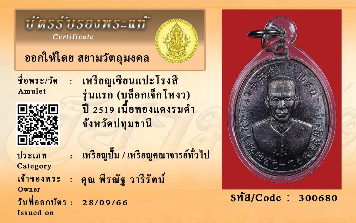 รหัสสินค้า : 300680 เหรียญเซียนแปะโรงสี รุ่นแรก (บล็อกเจ็กโหงว) ปี 2519 เนื้อทองแดงรมดำ จังหวัดปทุมธานี