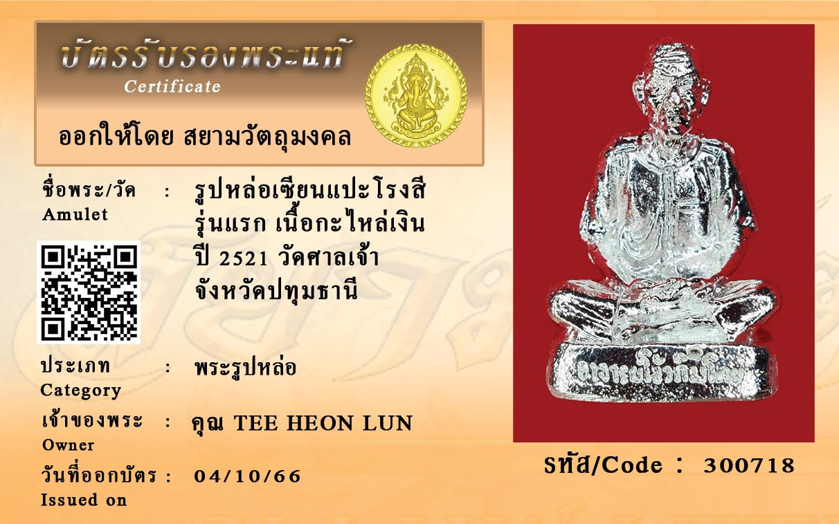 รหัสสินค้า : 300718 รูปหล่อเซียนแปะโรงสี รุ่นแรก เนื้อกะไหล่เงิน ปี 2521 วัดศาลเจ้า จังหวัดปทุมธานี