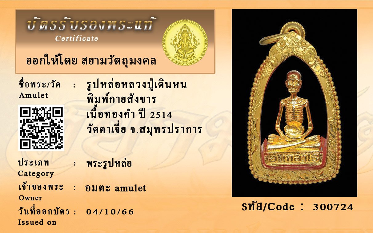 รหัสสินค้า : 300724 รูปหล่อหลวงปู่เดินหน พิมพ์กายสังขาร เนื้อทองคำ ปี 2514 วัดตาเจี่ย จ. สมุทรปราการ