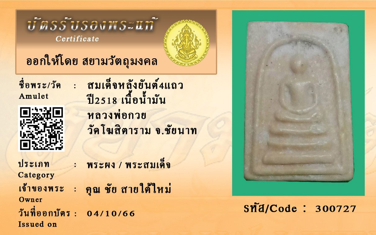 รหัสสินค้า : 300727 สมเด็จหลังยันต์4แถว ปี2518 เนื้อน้ำมัน หลวงพ่อกวย วัดโฆสิตาราม จ.ชัยนาท