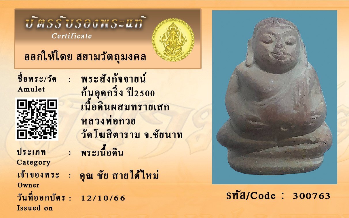 รหัสสินค้า : 300763 พระสังกัจจายน์ ก้นอุดกริ่ง ปี2500 เนื้อดินผสมทรายเสก หลวงพ่อกวย วัดโฆสิตาราม จ.ชัยนาท