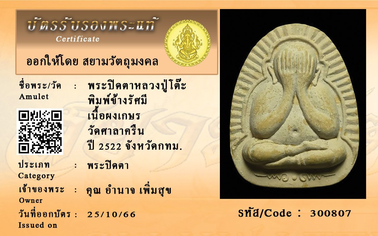 ค้นหาพระ พร้อมบัตรรับรองพระแท้
