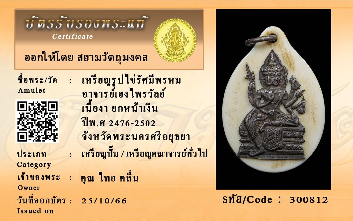 รหัสสินค้า : 300812 เหรียญรูปไข่รัศมีพรหม อาจารย์เฮงไพรวัลย์ เนื้องา ยกหน้าเงิน ปีพ.ศ 2476-2502 จังหวัดพระนครศรีอยุธยา