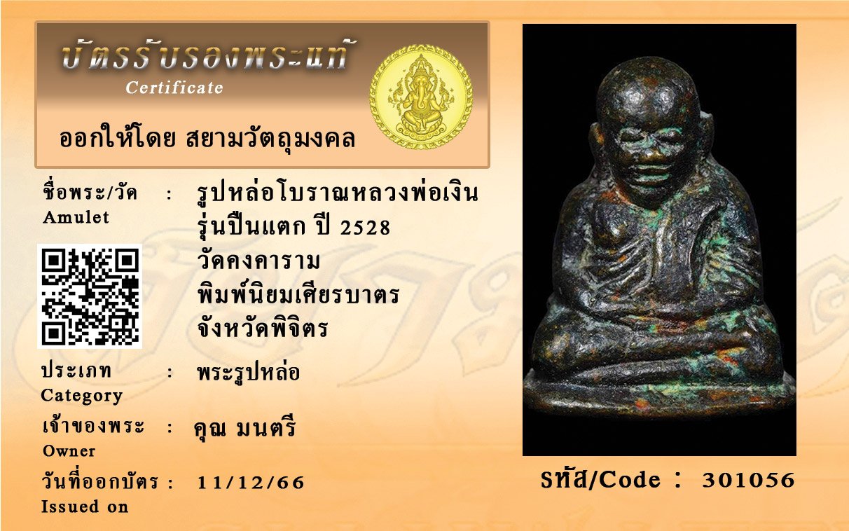 รหัสสินค้า : 301056 รูปหล่อโบราณหลวงพ่อเงิน รุ่นปืนแตก ปี 2528 วัดคงคาราม พิมพ์นิยมเศียรบาตร จังหวัดพิจิตร