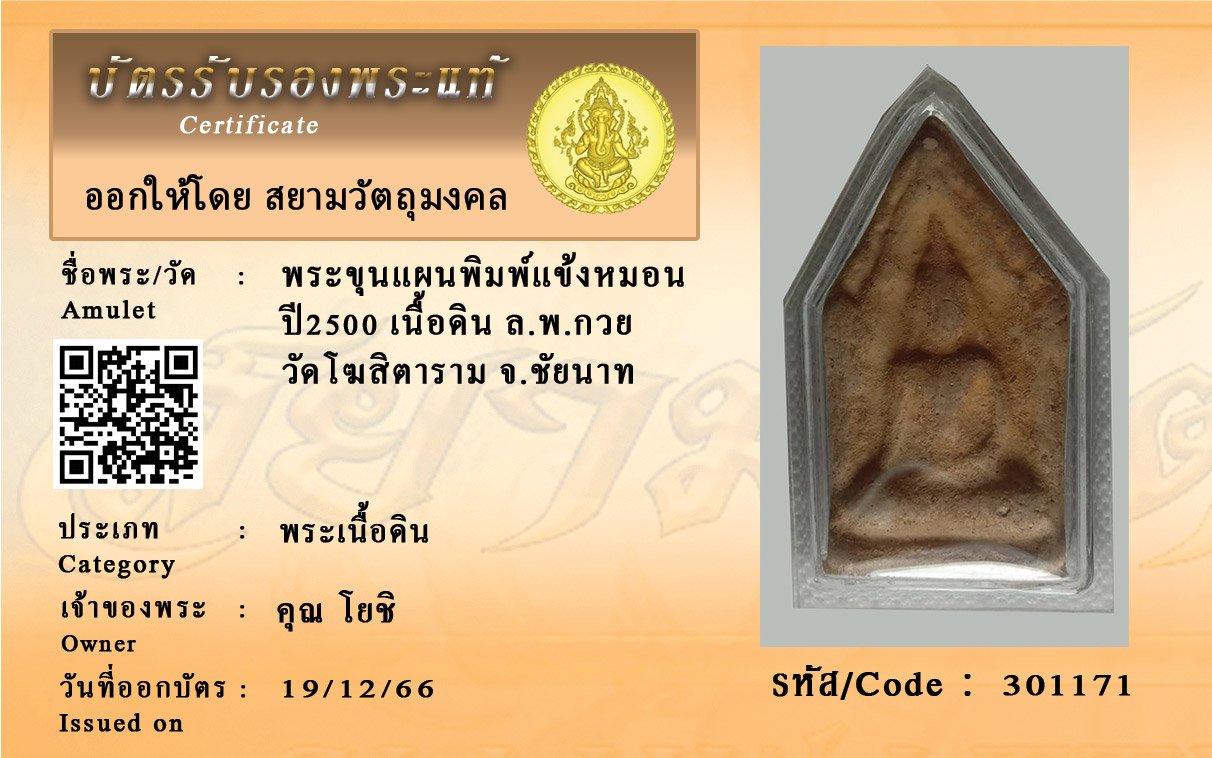 รหัสสินค้า : 301171 พระขุนแผนพิมพ์แข้งหมอน ปี2500 เนื้อดิน ล.พ.กวย วัดโฆสิตาราม จ.ชัยนาท