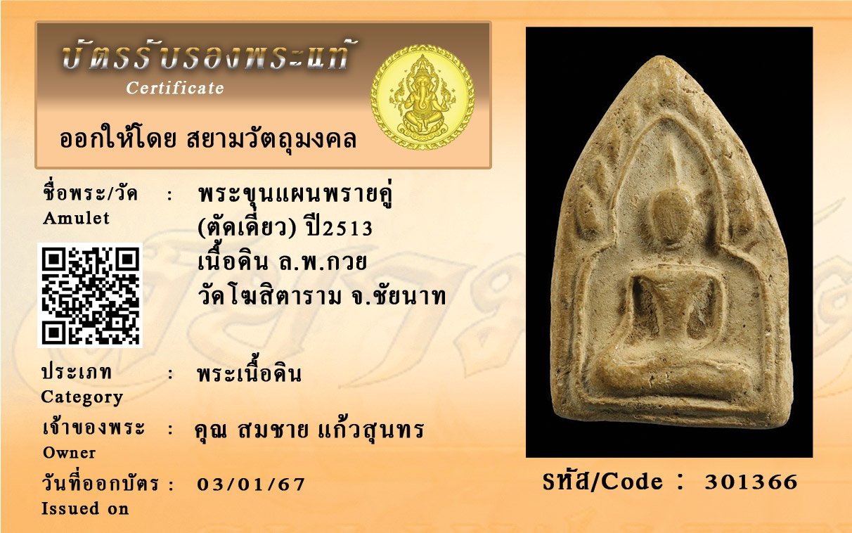 รหัสสินค้า : 301366 พระขุนแผนพรายคู่ (ตัดเดี่ยว) ปี2513 เนื้อดิน ล.พ.กวย วัดโฆสิตาราม จ.ชัยนาท