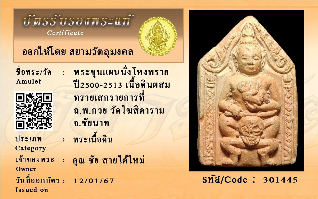 รหัสสินค้า : 301445 พระขุนแผนนั่งโหงพราย ปี2500-2513 เนื้อดินผสม ทรายเสกรายการที่ ล.พ.กวย วัดโฆสิตาราม จ.ชัยนาท