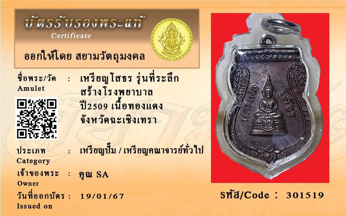 รหัสสินค้า : 301519 เหรียญโสธร รุ่นที่ระลึก สร้างโรงพยาบาล ปี2509 เนื้อทองแดง จังหวัดฉะเชิงเทรา
