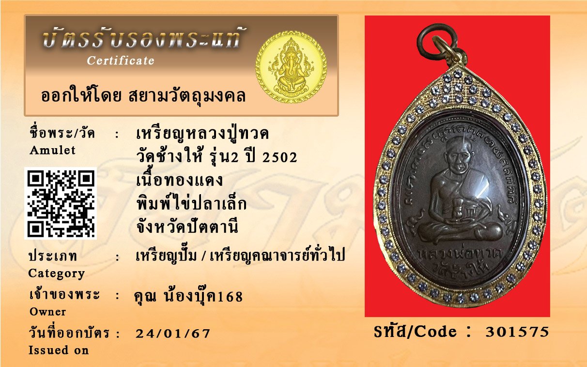 รหัสสินค้า : 301575 เหรียญหลวงปู่ทวด วัดช้างให้ รุ่น2 ปี 2502 เนื้อทองแดง พิมพ์ไข่ปลาเล็ก จังหวัดปัตตานี
