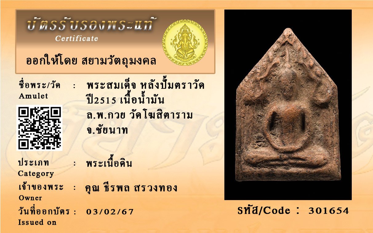 รหัสสินค้า : 301654 ขุนแผนหลังสุ บล็อกวัด หลวงพ่อกวย วัดโฆสิตาราม ปี2515 เนื้อดิน จังหวัดชัยนาท