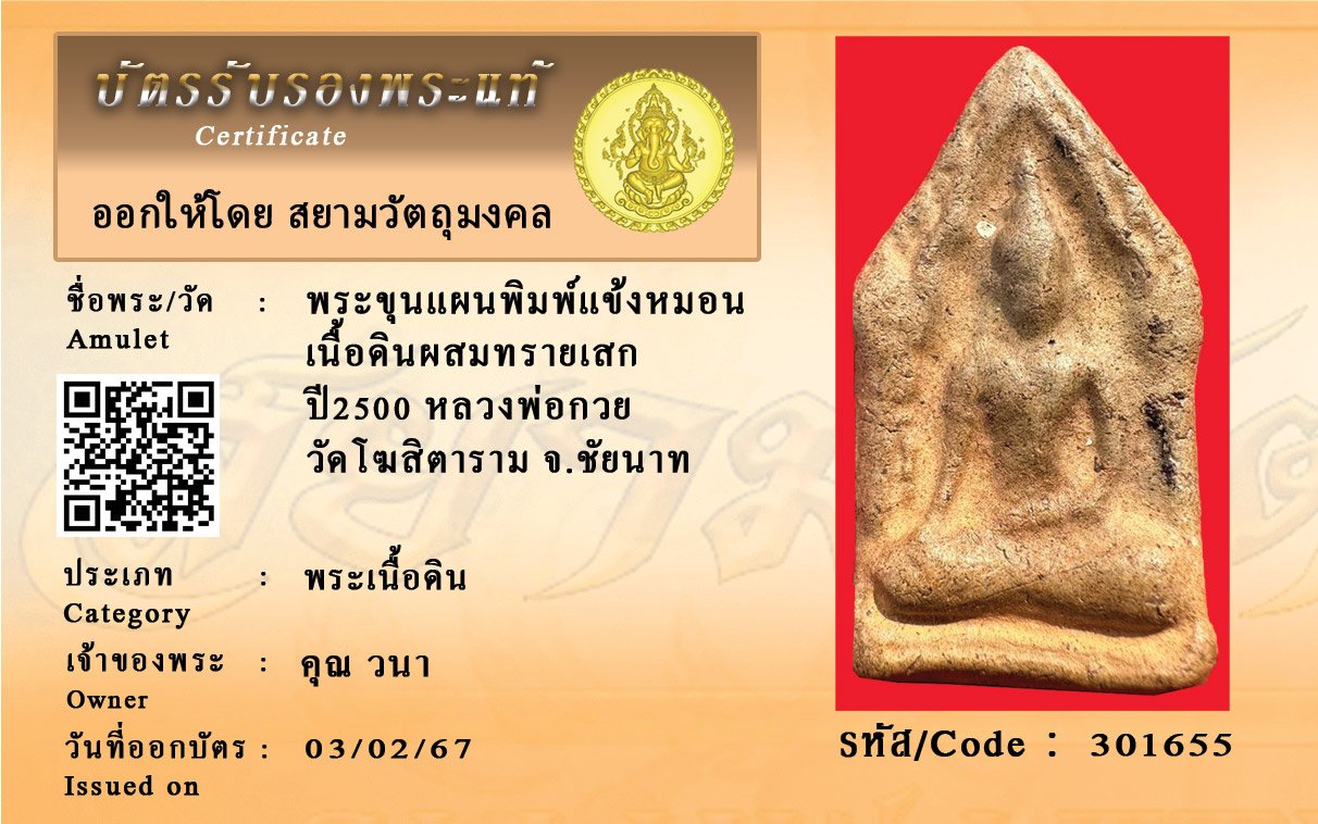 รหัสสินค้า : 301655 พระขุนแผนพิมพ์แข้งหมอน เนื้อดินผสมทรายเสก ปี2500 หลวงพ่อกวย วัดโฆสิตาราม จ.ชัยนาท
