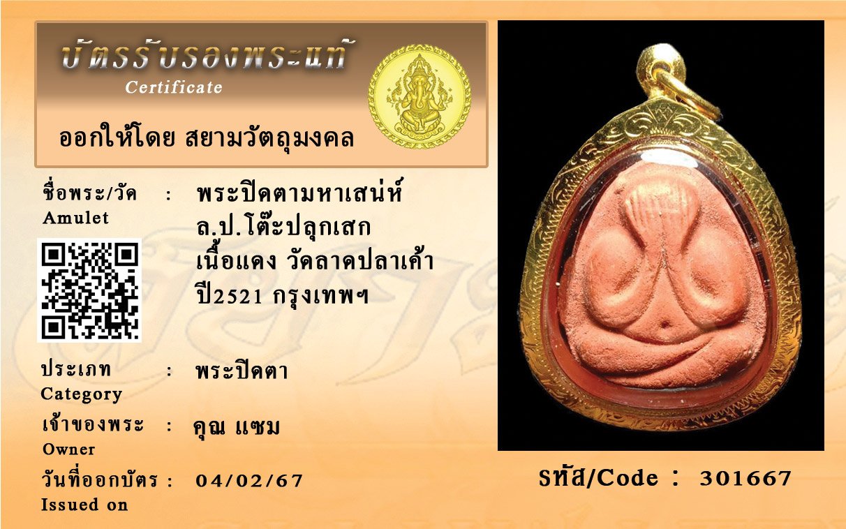 รหัสสินค้า : 301667 พระปิดตามหาเสน่ห์ ล.ป.โต๊ะปลุกเสก เนื้อแดง วัดลาดปลาเค้า ปี2521 กรุงเทพฯ