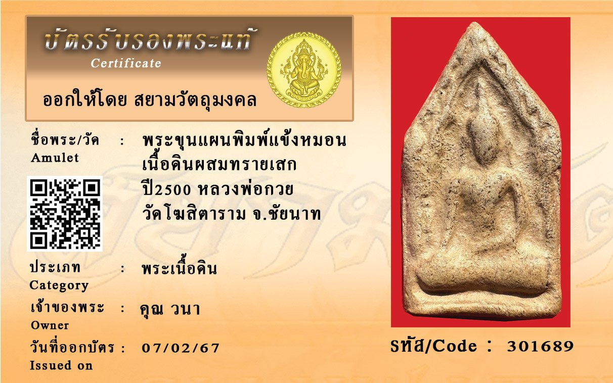รหัสสินค้า : 301689 พระขุนแผนพิมพ์แข้งหมอน เนื้อดินผสมทรายเสก ปี2500 หลวงพ่อกวย วัดโฆสิตาราม จ.ชัยนาท