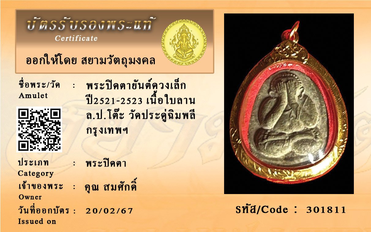รหัสสินค้า : 301811 พระปิดตายันต์ดวงเล็ก ปี2521-2523 เนื้อใบลาน ล.ป.โต๊ะ วัดประดู่ฉิมพลี กรุงเทพฯ