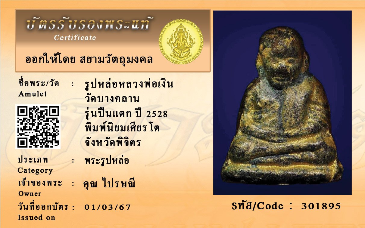 รหัสสินค้า : 301895 รูปหล่อหลวงพ่อเงิน วัดบางคลาน รุ่นปืนแตก ปี 2528 พิมพ์นิยมเศียรโต จังหวัดพิจิตร