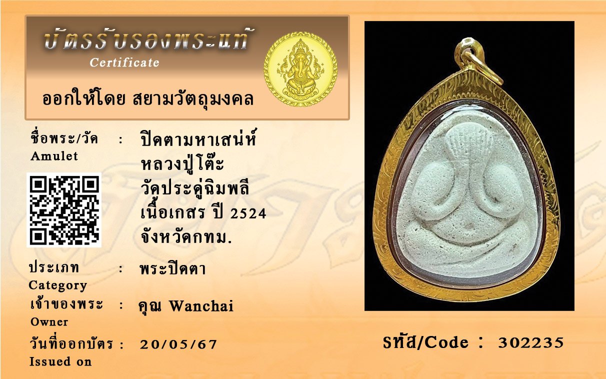รหัสสินค้า : 302235 ปิดตามหาเสน่ห์ หลวงปู่โต๊ะ วัดประดู่ฉิมพลี เนื้อเกสร ปี 2524 จังหวัดกทม.