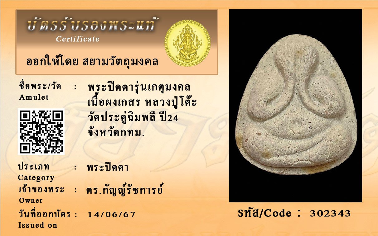 รหัสสินค้า : 302343 พระปิดตารุ่นเกตุมงคล เนื้อผงเกสร หลวงปู่โต๊ะ วัดประดู่ฉิมพลี ปี24 จังหวัดกทม.