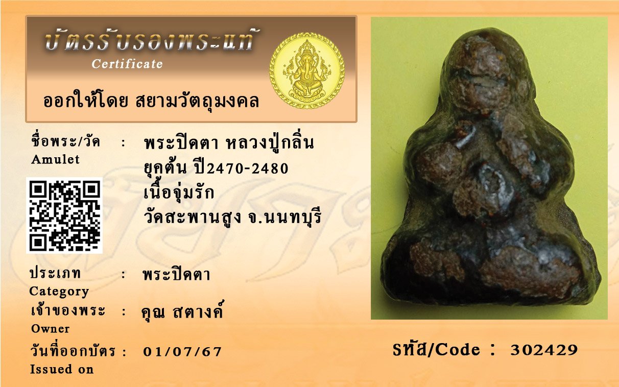รหัสสินค้า : 302429 พระปิดตา หลวงปู่กลิ่น ยุคต้น ปี2470-2480 เนื้อจุ่มรัก วัดสะพานสูง จ.นนทบุรี